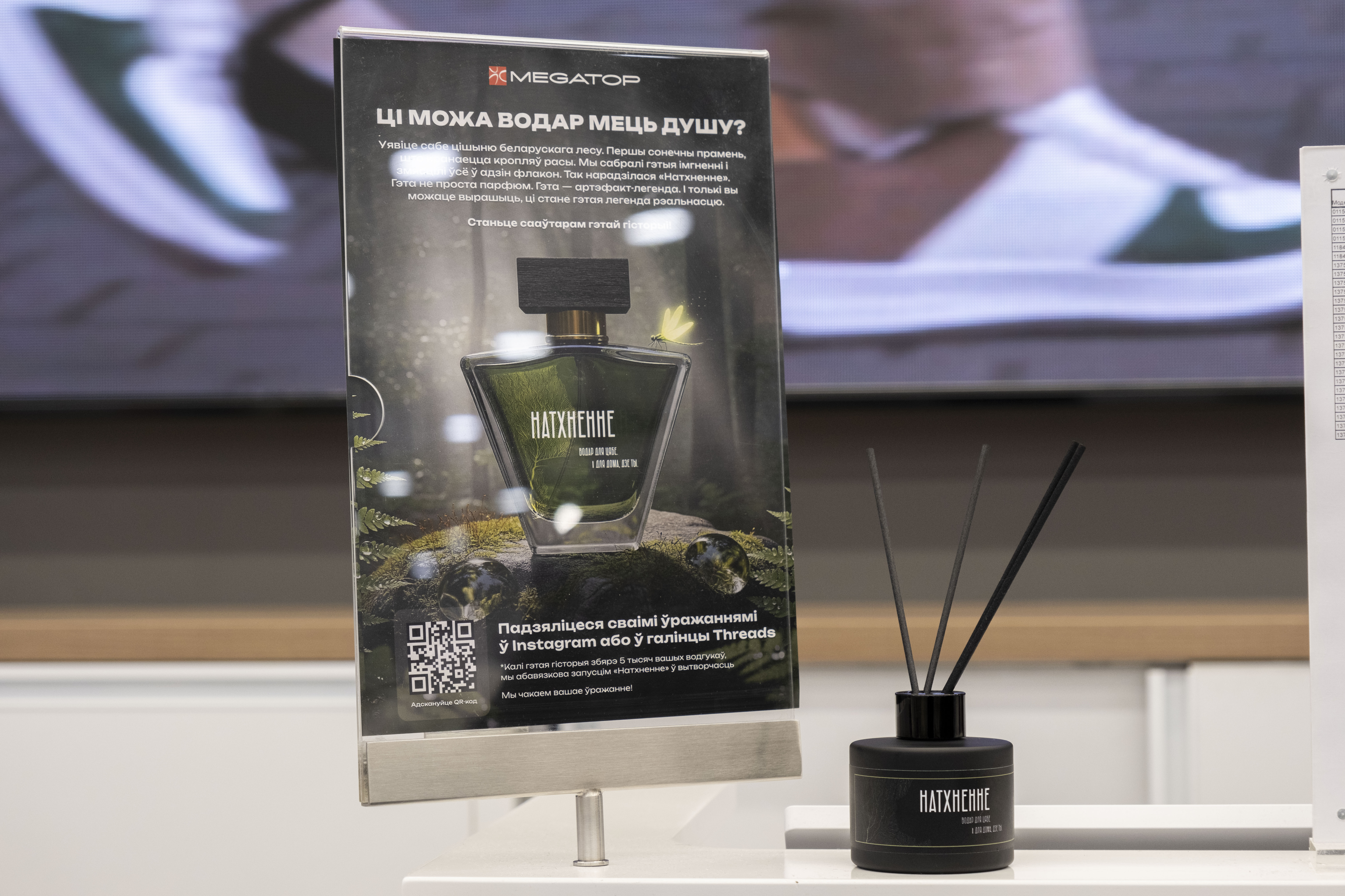 В магазинах MEGATOP также продолжается музыкальное путешествие, созданное из звуков белорусских рек, лесов и птиц. Музыка и аромат сливаются в одно пространство, усиливая впечатление и превращая каждый визит в уникальный опыт.