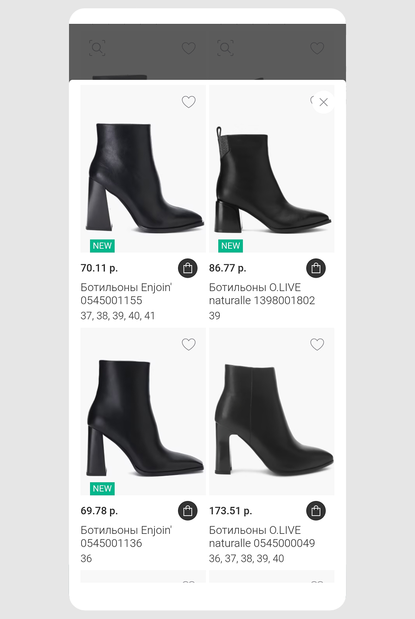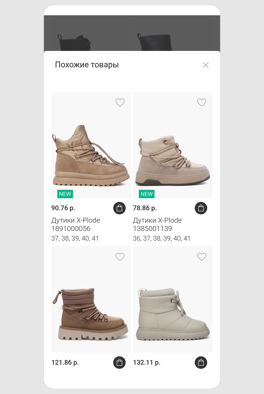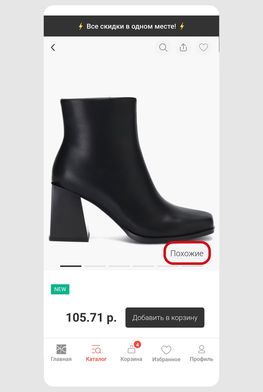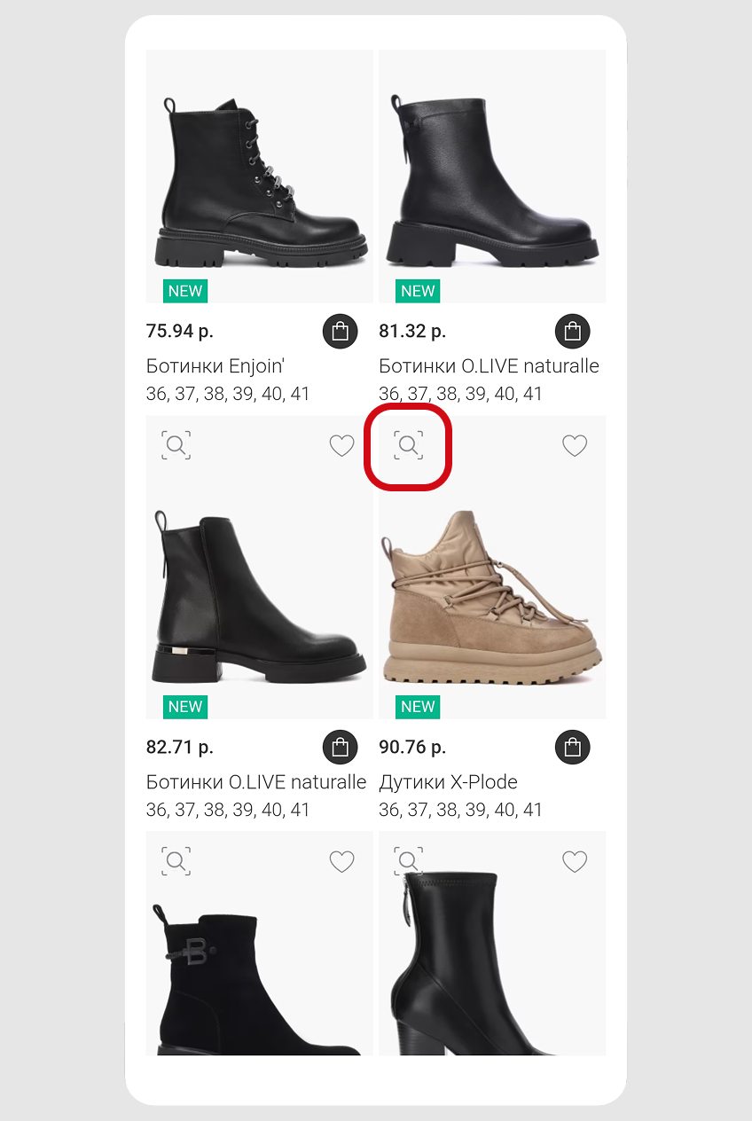 ⚠️ Пока поиск похожих доступен только для обуви, но в планах реализация функционала и для других категорий.