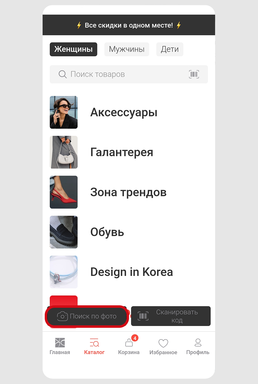Сделай фото или загрузи изображение любой обуви, и нейросеть подберет похожие модели из каталога.